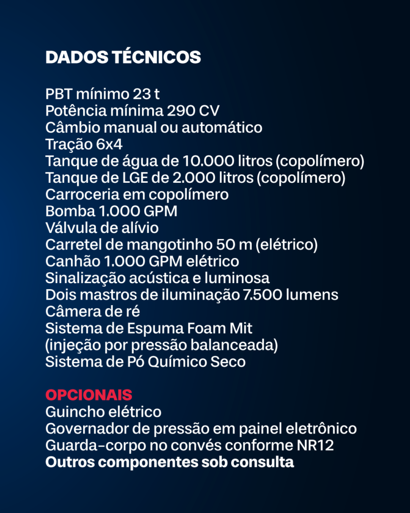 Viaturas de catálogo: confira a ficha técnica do nosso AHQ 23 t – CS Bomba Mid Ship