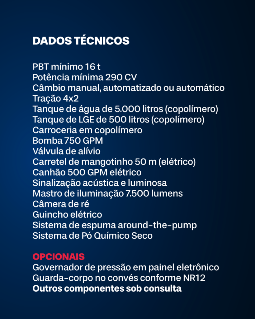 Viaturas de catálogo: confira a ficha técnica do nosso AHQ 16 t — CD Bomba Traseira